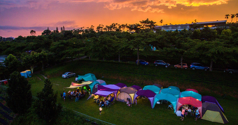 露營區裡大人們搭起帳篷,炊煮米飯,洗碗清理,垃圾分類,自然而然地和旁邊的露營家庭打招呼,彼此分享食物。孩子們看著大人的一舉一動,根本不需要特別叮嚀他們「打聲招呼」、「自己整理棉被」、「做好垃圾分類」等,看到露營區裡自然形成的秩序和大人們自動自發的行為,孩子們能夠學習到和人們相處時什麼該做、而什麼不該做。這也是我們一家人待在家裡時,永遠學不到的「山林教育」。