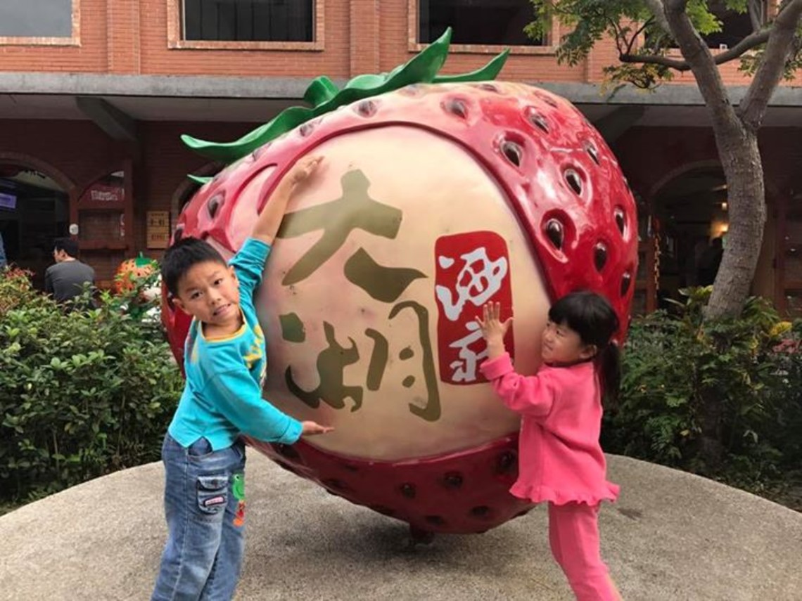 到了大湖酒莊看到最愛的草莓更是開心的唱著:「草莓草莓我愛妳」。