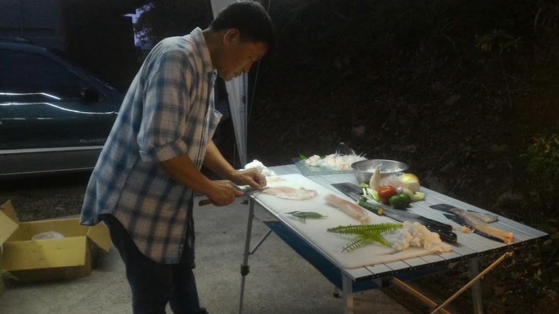前幾天很幸運受到露營樂團隊的邀請,參與為期兩天一夜的VIP尊爵團 -「新露營運動 Local is King」食材試吃活動,享用由日式專業主廚烹煮尖石在地食材的美味大餐,期間除了眾所周知的桂竹筍料理外,餐桌同時擺滿了尖石鄉後山養殖鯛魚做成的美味料理,生魚片、握壽司鮮甜Q彈,火烤魚、麻辣魚嗆味十足肉質軟嫩,海鮮涮魚片火鍋更是讓大家一碗接著一碗,飽食之後對「尖石鯛」的美味口感,留下了無法抹滅的深刻印象。