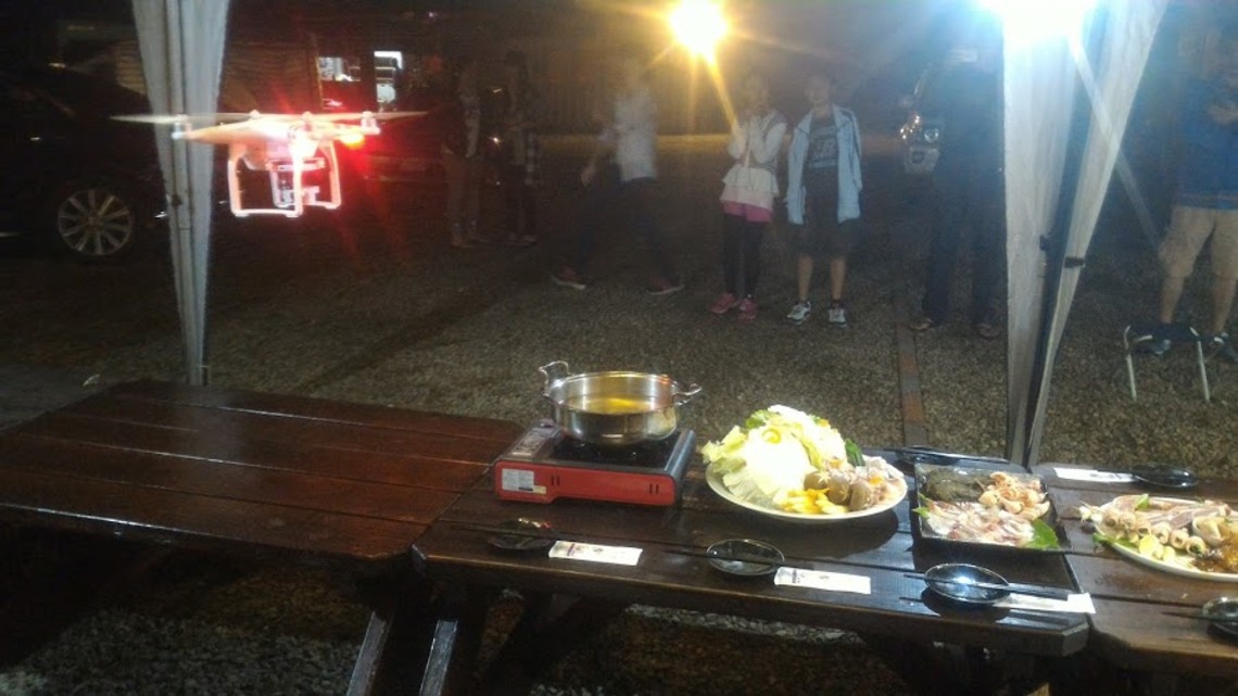 為了真實呈現菜色的完整風貌,工作人員特別操控空拍機凌空拍攝,限於客廳帳的高度問題,期間經過數次試飛方才完成目標