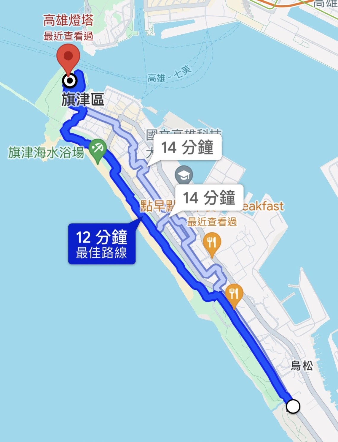 Google maps 搜尋 : 高雄燈塔 ,從營區到燈塔只要12~15分鐘 (大約3.5公里)