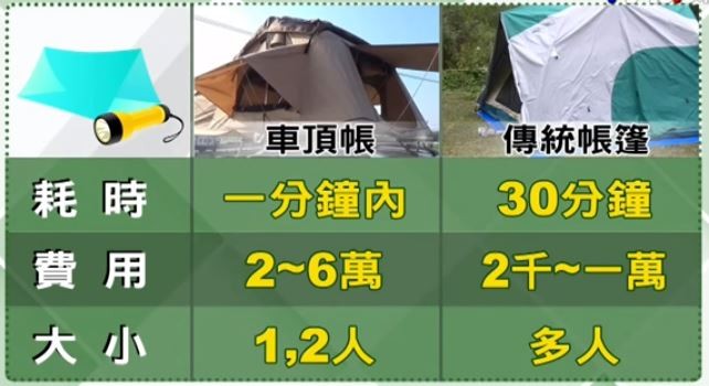 愛露營的人都知道,要搭帳篷是件讓人麻煩苦差事,步驟繁雜又耗時,不想麻煩,就有業者引進新的車頂帳篷,只要輕輕一拉,車頂帳篷就完成,攜帶又方便。只是要加裝在車頂上,不過要記得向監理站申請喔!